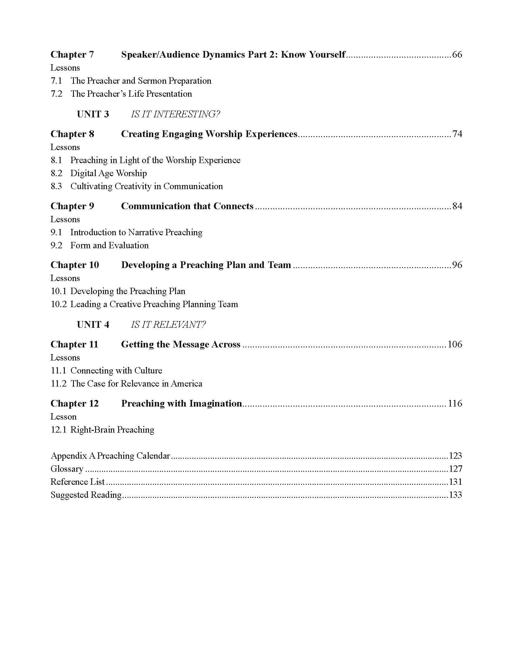 The purpose of this course is to help preachers present life-changing messages that connect with the world around them. The course will focus on presenting messages that are true, clear, interesting, and relevant. Students will be challenged to present messages that are true to the intent and power of Scripture. The course will also examine the post-modern culture and offer help in making messages relevant to the needs and concerns of this audience.
